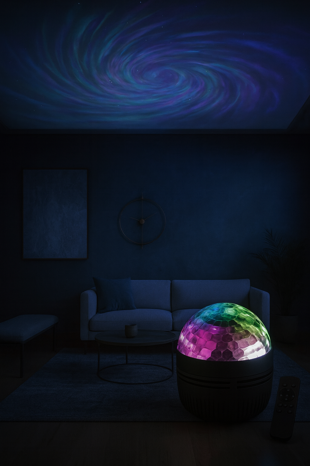 Dzięki połączeniu efektów gwiezdnych i dynamicznej mgławicy, FajnaLampka™ tworzy na suficie hipnotyzujące obrazy, które idealnie sprawdzą się podczas relaksu, snu, medytacji, oglądania filmów lub jako nastrojowe oświetlenie.
